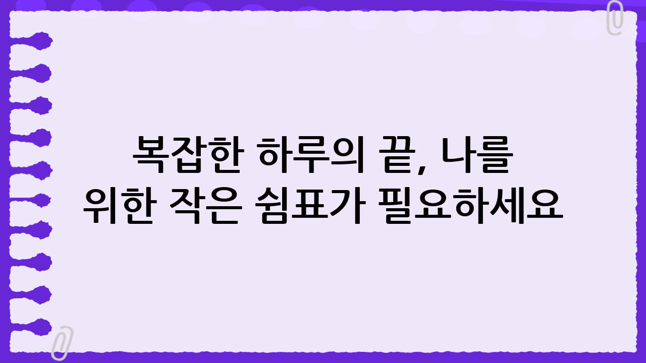 복잡한 하루의 끝, 나를 위한 작은 쉼표가 필요하세요?