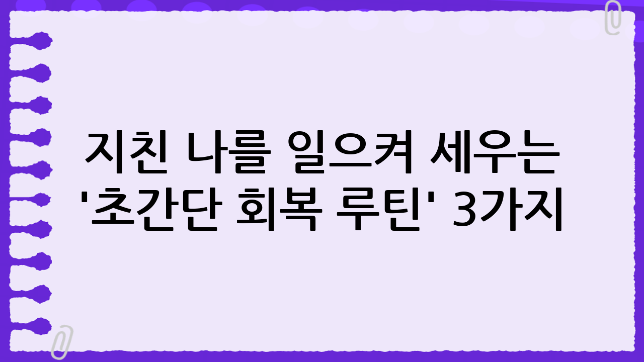 지친 나를 일으켜 세우는 '초간단 회복 루틴' 3가지
