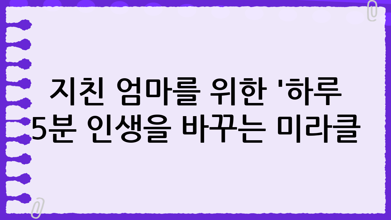 지친 엄마를 위한 '하루 5분 인생을 바꾸는 미라클 루틴' BEST 3
