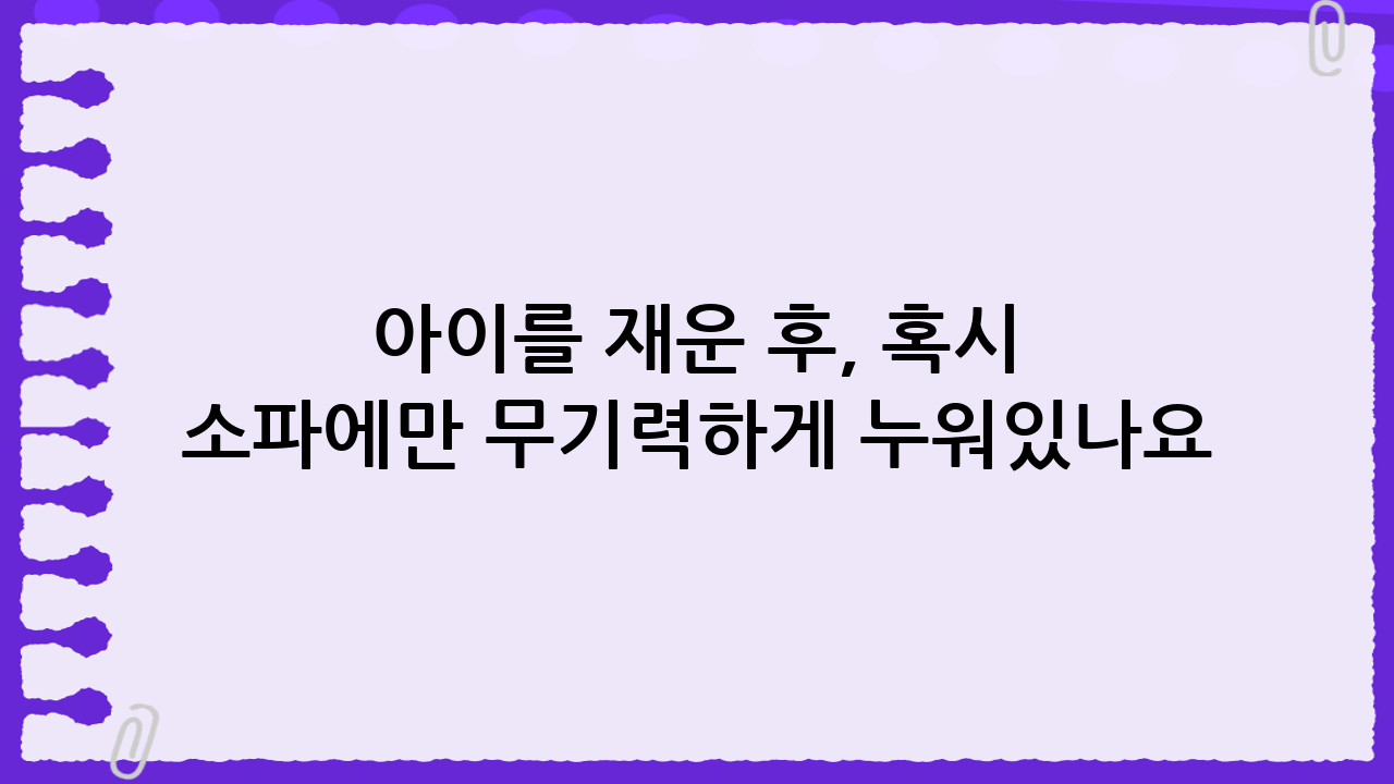 아이를 재운 후, 혹시 소파에만 무기력하게 누워있나요?