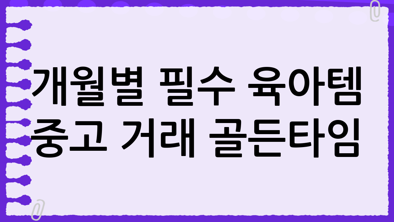 아기의 성장에 맞춰 필요한 육아용품을 중고로 사고파는 최적의 시기를 정리했습니다. 시기를 잘 맞추면 육아 비용을 크게 절약할 수 있습니다.