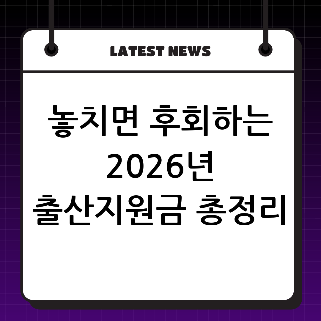 2026년, 축복 같은 아기와의 만남을 준비하고 계신가요? 설레는 마음과 함께, 어디서부터 어떻게 준비해야 할지 막막하게 느껴질 수 있는 출산 지원금! 2026년 출산 예정이라면 놓치지 마세요! 시기별로 신청해야 할 지원금 로드맵을 따라 정부가 드리는 든든한 혜택을 하나도 빠짐없이 챙겨보세요. 행복한 육아의 첫걸음을 힘차게 내디딜 수 있도록 응원합니다!