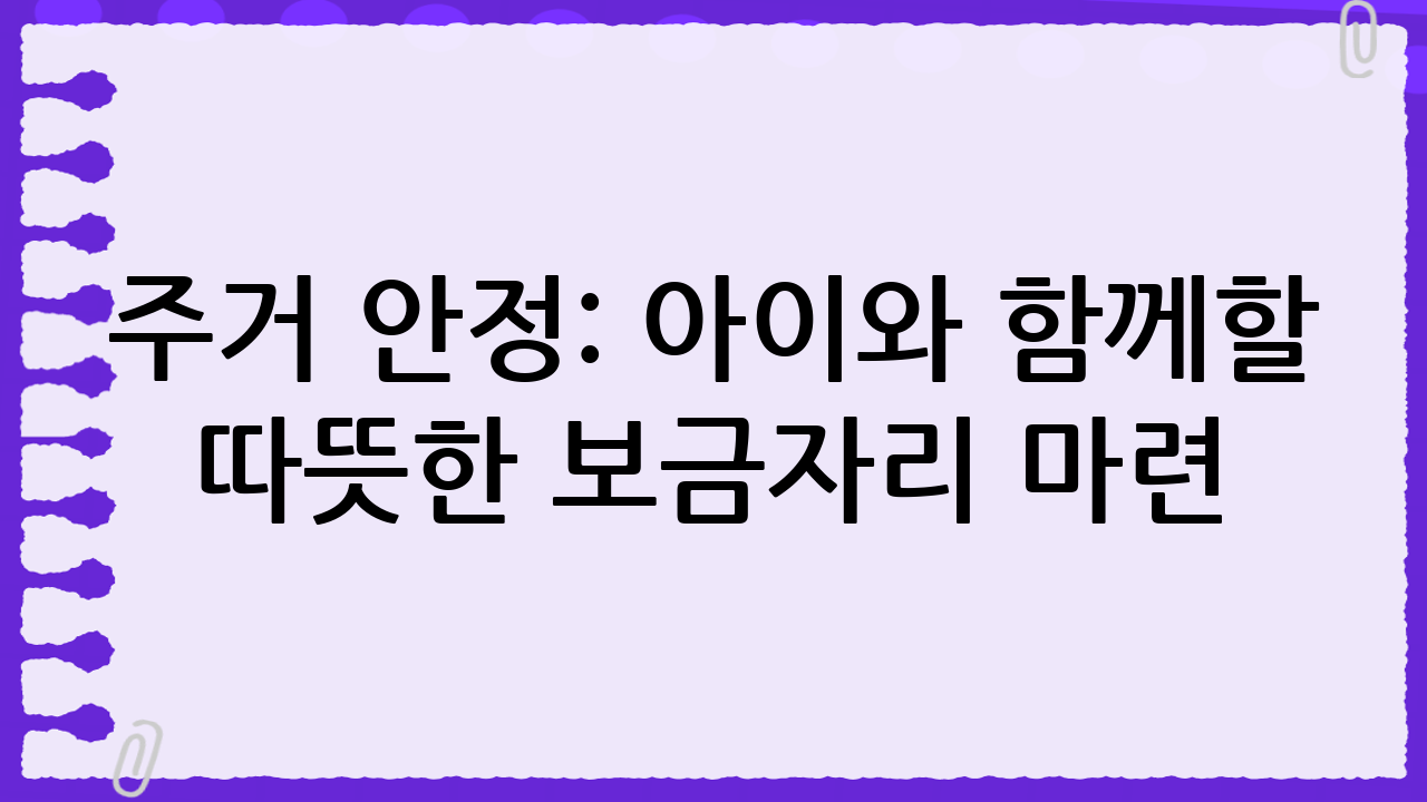 주거 안정: 아이와 함께할 따뜻한 보금자리 마련