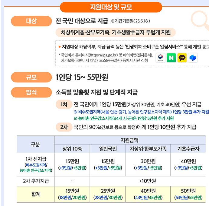 여기에 지역경제 균형 발전을 위해 비수도권과 농어촌 인구감소지역 주민에게는 추가 지급 혜택이 붙었습니다.
