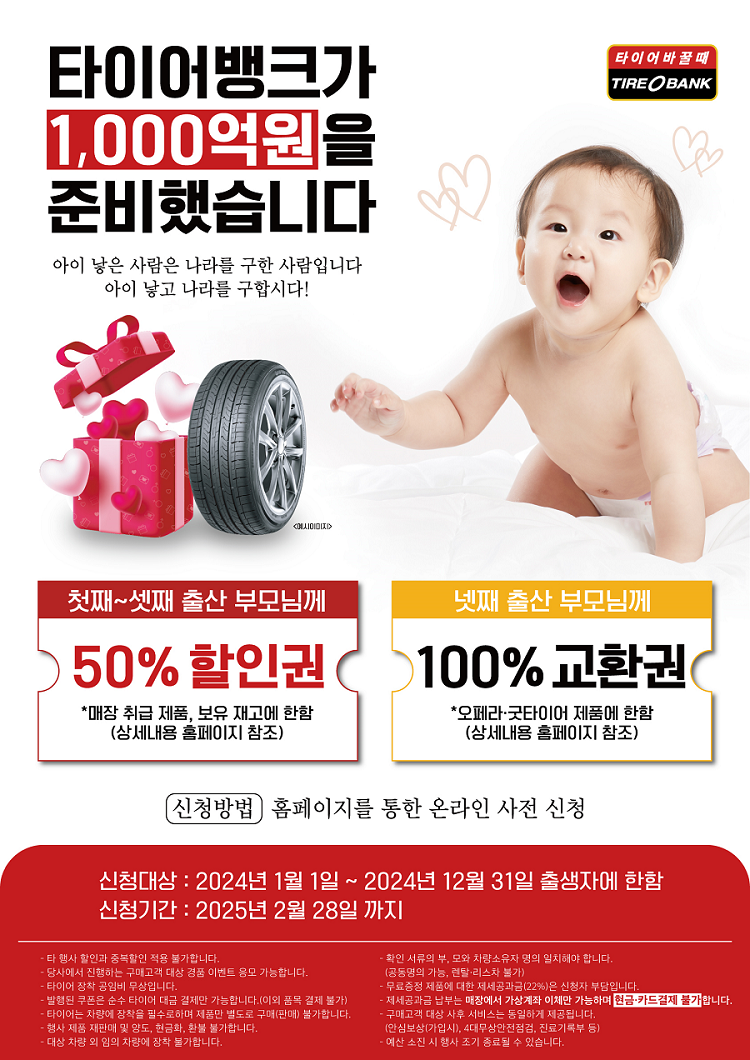 - 타이어뱅크 출산가정 무료 이벤트, 타이어뱅크 출산가정 할인 이벤트, 출산가정 타이어 할인