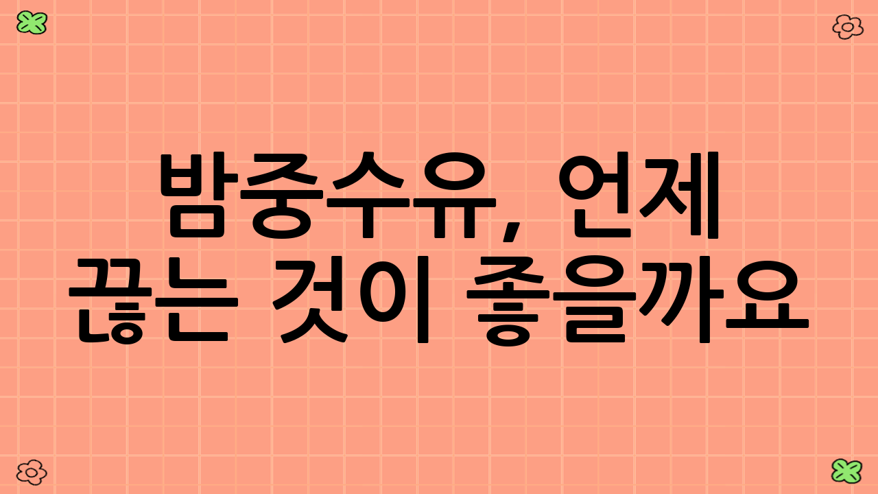 가장 많이 궁금해하시는 질문 중 하나입니다. 밤중수유를 끊는 시기에는 정답이 없지만, 일반적으로 몇 가지 신호를 통해 적절한 때를 가늠해 볼 수 있습니다.