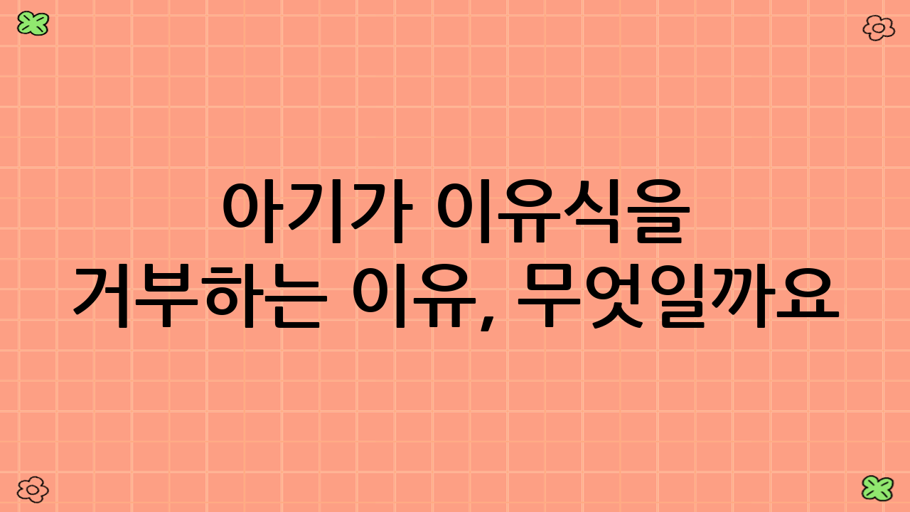 아기가 갑자기 이유식을 거부하는 데에는 여러 가지 복합적인 이유가 있습니다. 크게 신체적, 심리적, 음식 자체의 문제로 나누어 살펴볼 수 있습니다.