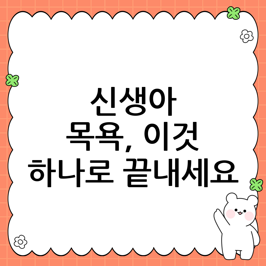 - 배꼽 관리: 신생아의 경우 배꼽이 완전히 아물 때까지는 탯줄이 물에 오래 닿지 않도록 주의하고, 목욕 후에는 잘 말리고 소독해주는 것이 좋습니다.