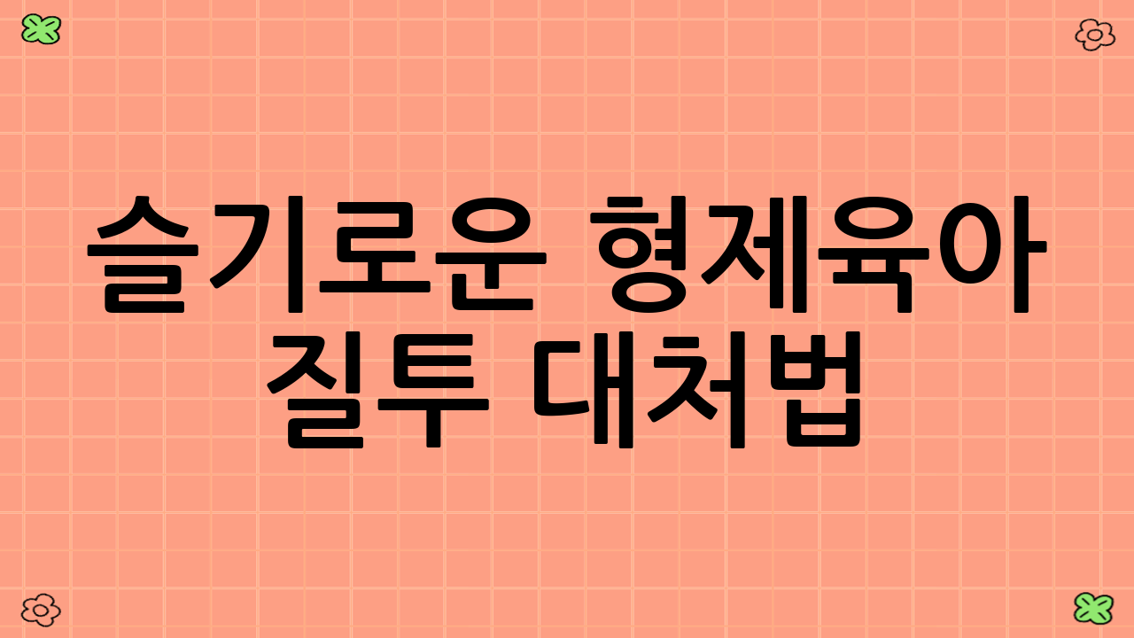 슬기로운 형제육아 질투 대처법