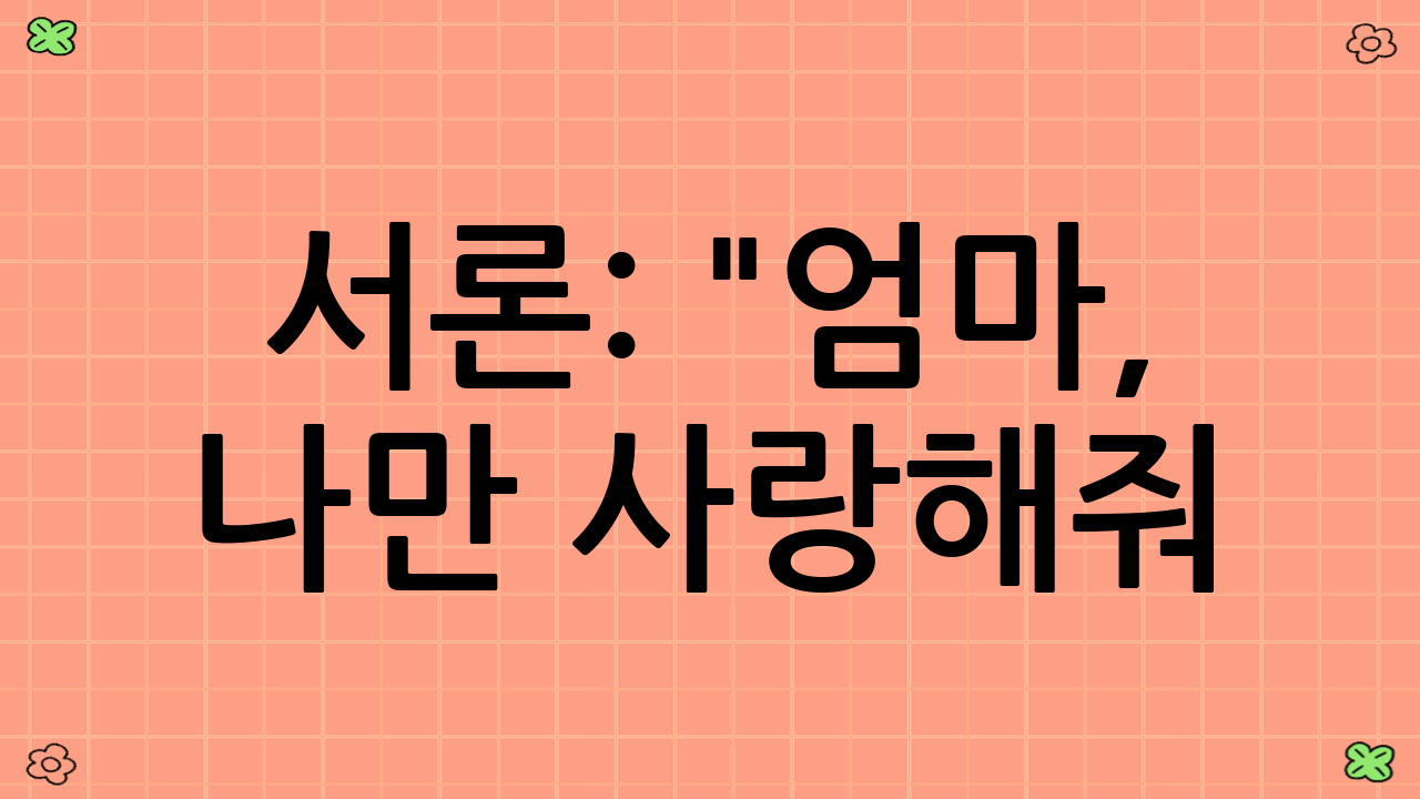 서론: "엄마, 나만 사랑해줘!" - 동생이 생긴 첫째의 마음