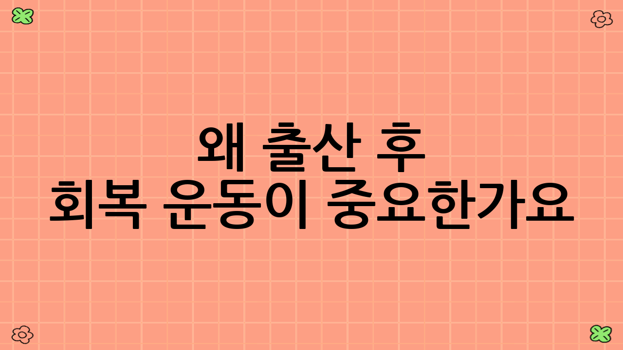 출산을 진심으로 축하드립니다! 아기와 함께하는 새로운 삶은 기쁨과 행복으로 가득하지만, 엄마의 몸은 임신과 출산이라는 큰 변화를 겪었습니다. 이제는 소중한 아기만큼이나 엄마 자신의 몸을 돌볼 시간입니다. 많은 분들이 출산 후 예전 몸으로 돌아가기 위해 조급해하지만, 섣부른 운동은 오히려 몸에 무리를 줄 수 있습니다. 건강하고 안전한 회복을 위해 가장 중요한 것은 바로 단계별로 진행하는 '출산 후 회복 운동'입니다. 이 글에서는 출산 후 회복 운동의 중요성부터 시기, 추천 운동, 그리고 주의사항까지 자세히 알아보겠습니다.