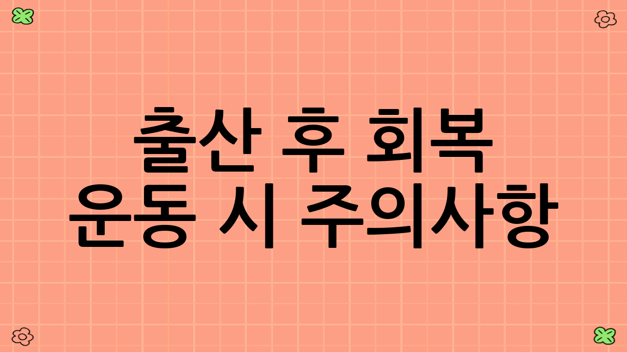 - 정서적 안정: 운동 시 분비되는 엔도르핀은 산후 우울감을 완화하고 스트레스 해소에 도움을 줍니다.