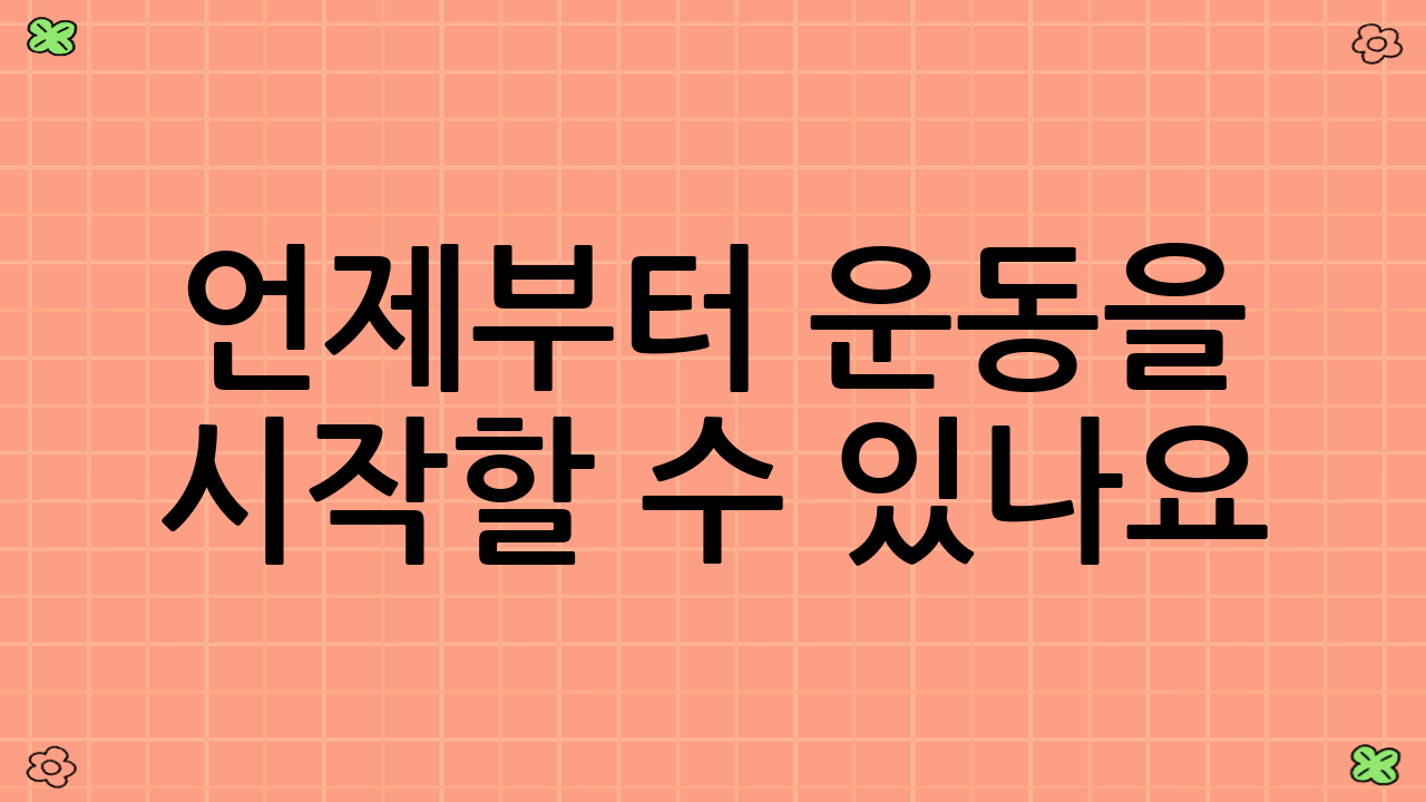 운동 시작 시기는 개인의 회복 속도와 분만 방식에 따라 다릅니다. 가장 중요한 원칙은 운동 시작 전 반드시 담당 의사와 상담하여 몸 상태를 확인하고 허락을 받는 것입니다. 조급한 마음은 금물입니다.