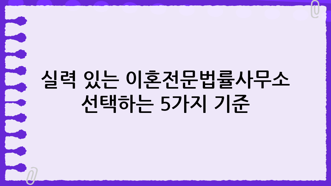 실력 있는 이혼전문법률사무소 선택하는 5가지 기준
