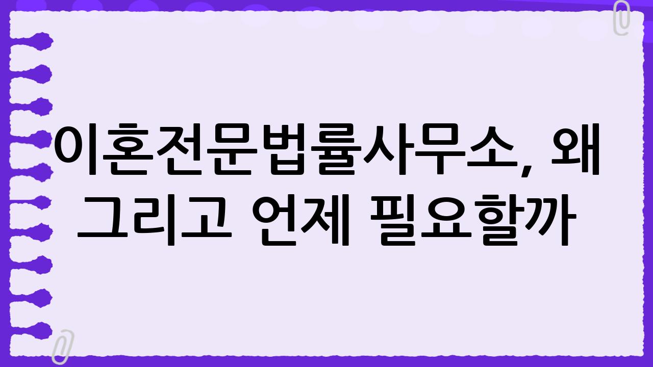 이혼전문법률사무소, 왜 그리고 언제 필요할까?