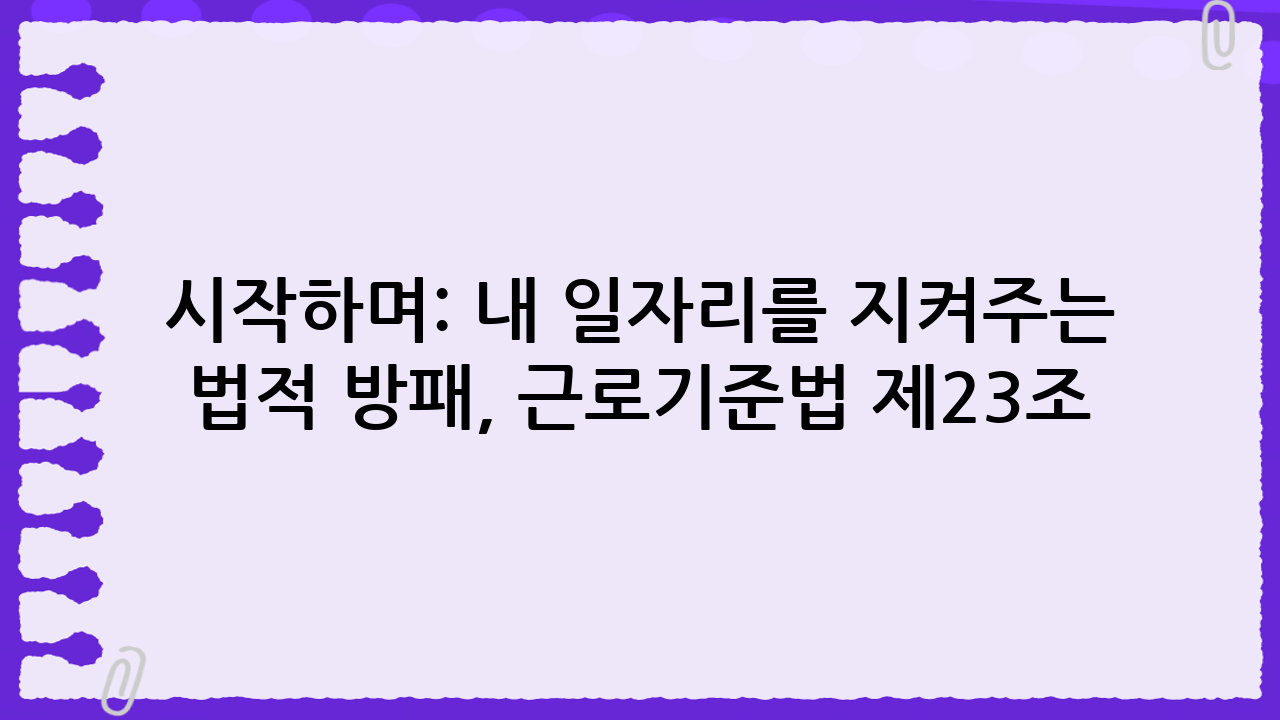 시작하며: 내 일자리를 지켜주는 법적 방패, 근로기준법 제23조