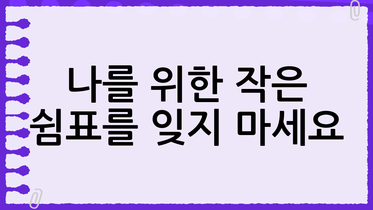 아이를 돌보는 데 모든 에너지를 쏟다 보면 번아웃이 오기 쉽습니다. 가장 중요한 것은 엄마가 먼저 행복해야 한다는 사실입니다. 아이가 낮잠을 자는 짧은 시간, 혹은 모든 육아가 끝난 밤에 온전히 나를 위한 시간을 가져보세요. 따뜻한 차 한 잔, 좋아하는 음악 감상, 짧은 스트레칭 등 무엇이든 좋습니다. 잠시라도 육아에서 벗어나 '나' 자신을 돌보는 시간은 다음 날을 버텨낼 힘을 줍니다. 엄마가 행복해야 아이도 행복하다는 사실, 잊지 마세요!