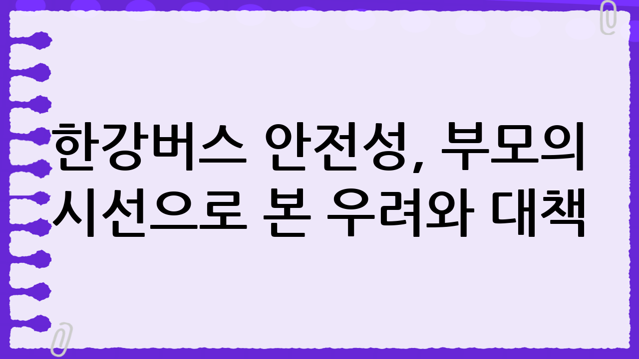 한강버스 안전성, 부모의 시선으로 본 우려와 대책