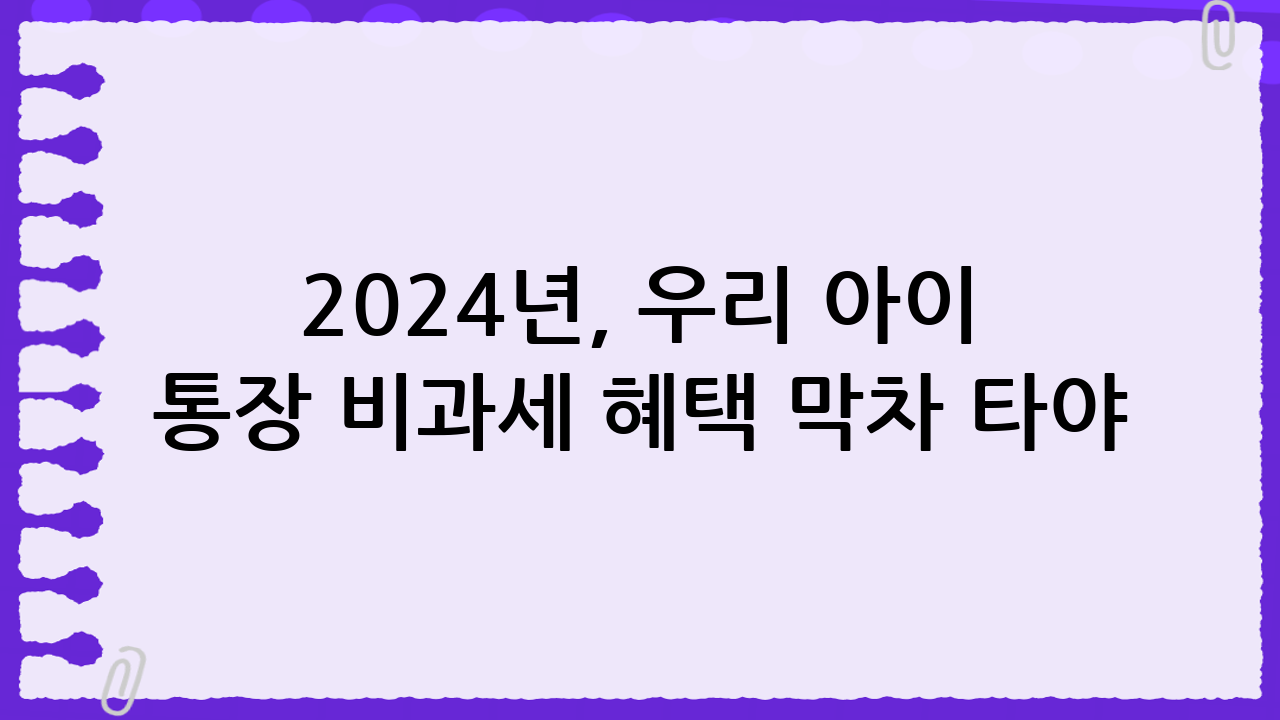 2024년, 우리 아이 통장 비과세 혜택 막차 타야 하는 이유